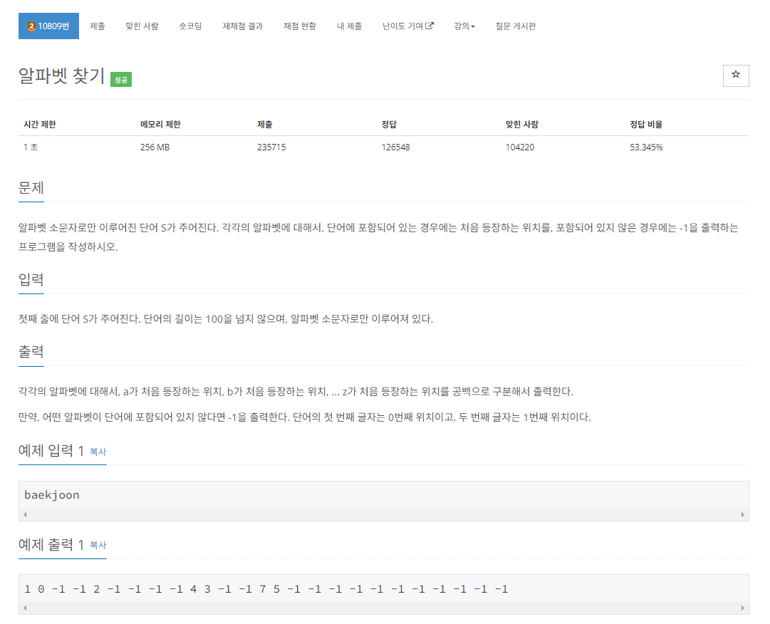 ๋ฐฑ์ค 10809๋ฒ ํ์ด
